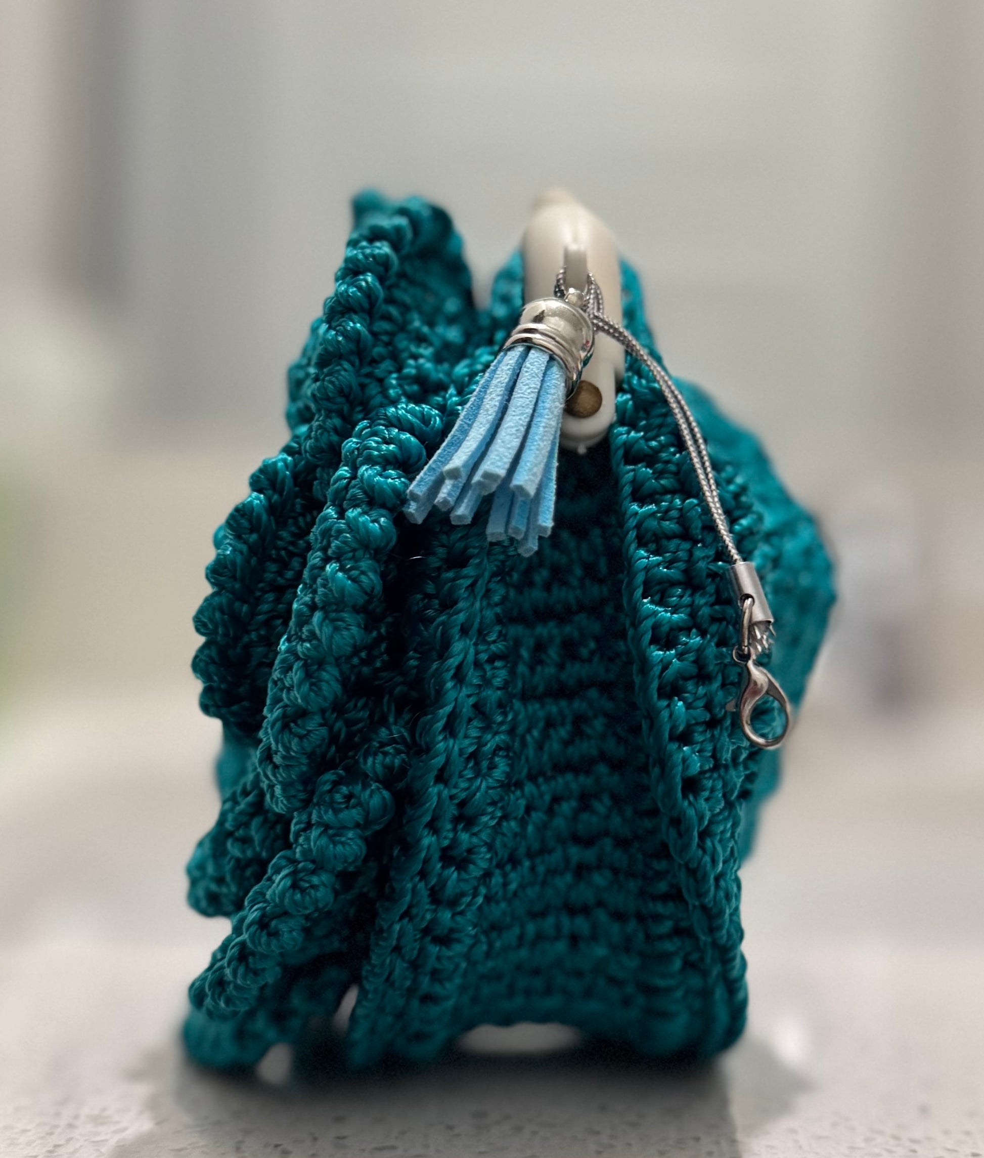 Crochet flower kisslock coin purse 🌸 — a petite beauty in soothing greenish-blue tones, about 4.5” of handmade goodness 💕 Each piece comes with a cute decorative charm for that extra touch of style.