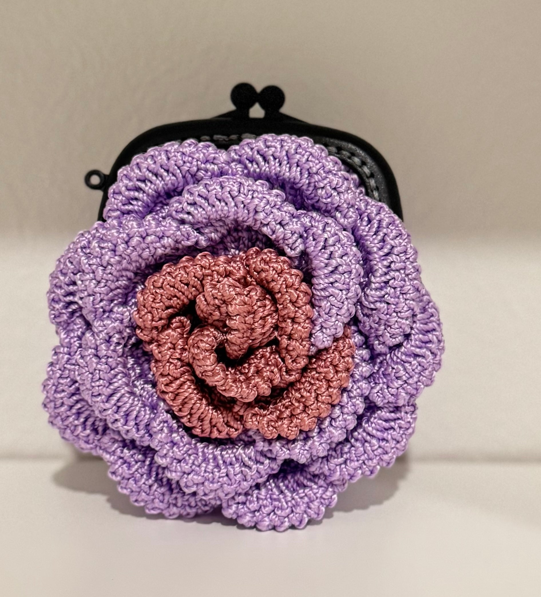 This charming handmade mini coin purse is crafted in a light purple yarn and finished with a vintage-style kisslock clasp. The front is adorned with a delicate crochet flower, adding a touch of elegance and whimsy. Compact yet functional, it’s perfect for carrying coins, small jewelry, or other little essentials. The sturdy frame ensures secure closure, while the lightweight design makes it easy to slip into a handbag or pocket. A sweet and practical accessory, it also makes a thoughtful handmade gift.