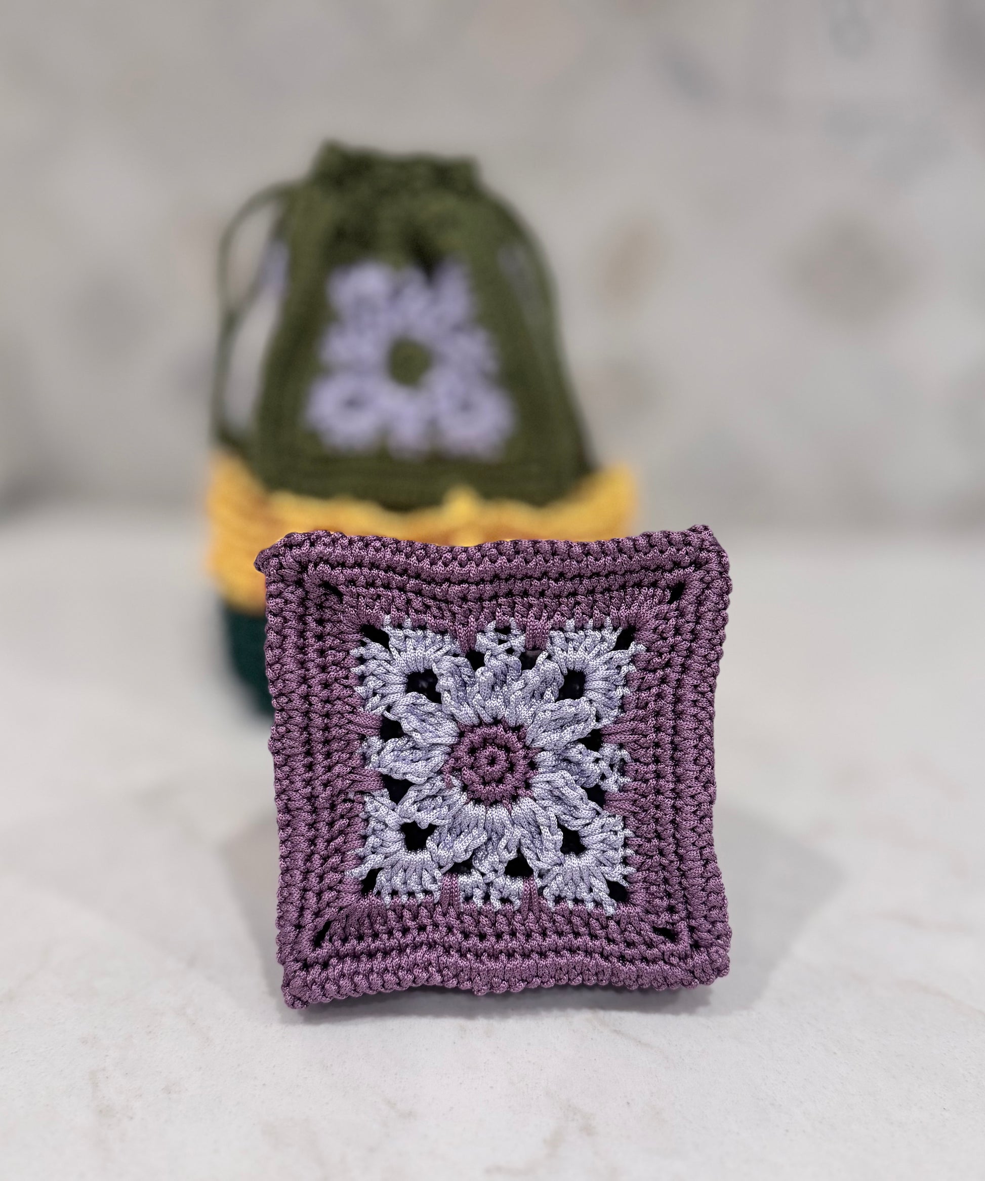 Crocheted Mini Drawstring Pouch – Purple Shades ✨